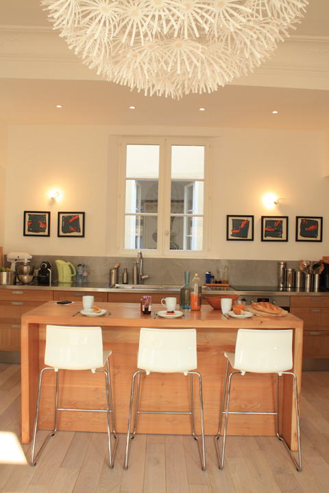 The remodeling of this property allowed for the creation of a loft-style family room with the kitchen at one end, and a sitting area at the other, allowing to cook while taking part in family and/or social life. and enjoying the beautiful view over Marseille's rooftops.